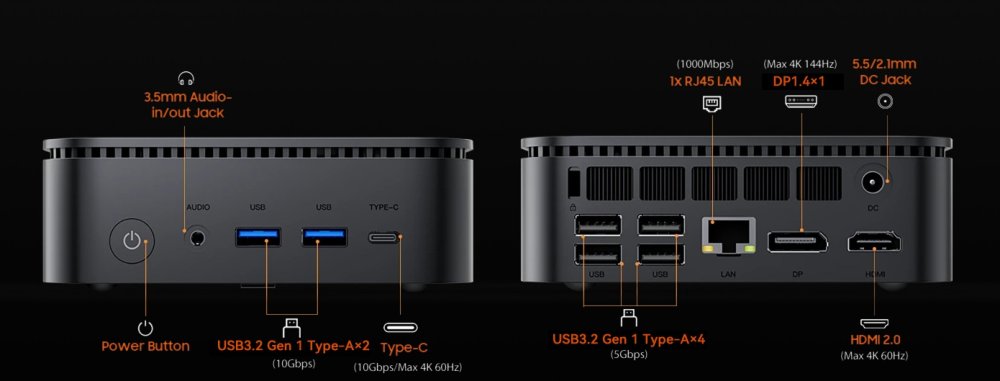 1 x HDMI 1 х Display Port 1 x RJ45 6 x USB 3.2 1 х USB type C 1 х наушники/микрофон |